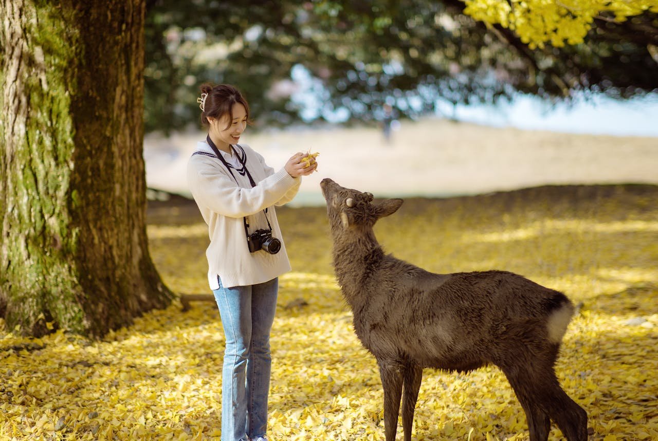 Excursion à Nara (45 min en train JR). Première capitale permanente du Japon (710-794). Le Tōdai-ji écrase par dimensions : hall Daibutsuden monumental (plus grande structure en bois du monde) abritant bouddha de bronze de 15 mètres coulé au VIIIe siècle. Le parc de Nara grouille de daims apprivoisés (plus de mille) quémandant shika senbei — considérés comme messagers des dieux shinto, ils circulent librement depuis douze siècles, s'inclinent pour demander nourriture. Déjeuner à Nara, puis visite du sanctuaire Kasuga Taisha : trois mille lanternes de pierre et bronze bordant allées forestières, atmosphère mystique intensifiée par pénombre arborée. Alternative : temple Kōfuku-ji (pagode à cinq étages) ou jardin Isuien (composition paysagère empruntant mont Wakakusa). Retour à Kyoto (~17h). Dernière nuit dans votre hôtel kyotoïte avant escapade thermale.