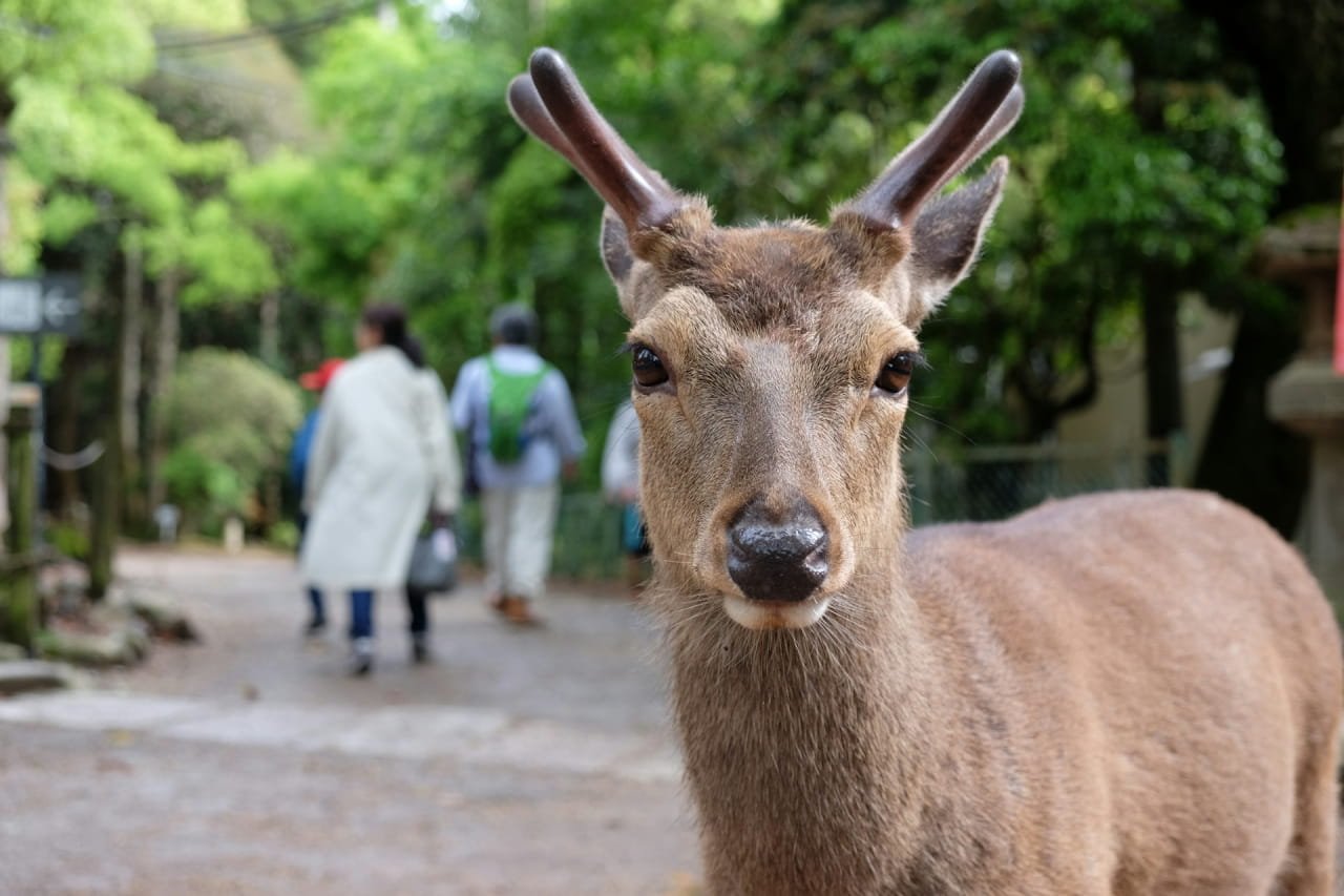 Train matinal pour Nara où tout commença : première capitale fixe du Japon au VIIIe siècle. Le Tōdai-ji impose sa masse : plus grande construction en bois du monde abritant un bouddha de bronze de 15 mètres coulé il y a douze siècles. Le parc grouille de daims semi-sauvages considérés comme messagers divins — ils s'inclinent pour quémander des galettes de riz, comportement appris transmis sur des générations. Train vers Osaka en début d'après-midi — changement radical d'atmosphère. Ici, pas de temples zen mais des canaux bordés de néons géants : crabe mécanique animé, coureur Glico illuminé, enseignes hurlant leurs promotions. Dotonbori concentre l'énergie populaire d'Osaka : takoyaki fumants vendus dans des échoppes minuscules, okonomiyaki grésillant sur plaques chaudes, foules denses jusqu'à tard dans la nuit.